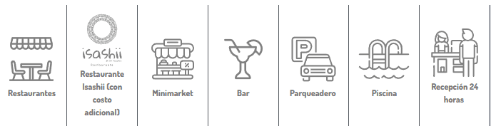 Un Oasis en el Desierto: Disfruta de nuestras excelentes instalaciones, que incluyen una espectacular piscina, un restaurante con sabores locales e internacionales, un bar para refrescarte y un minimarket.